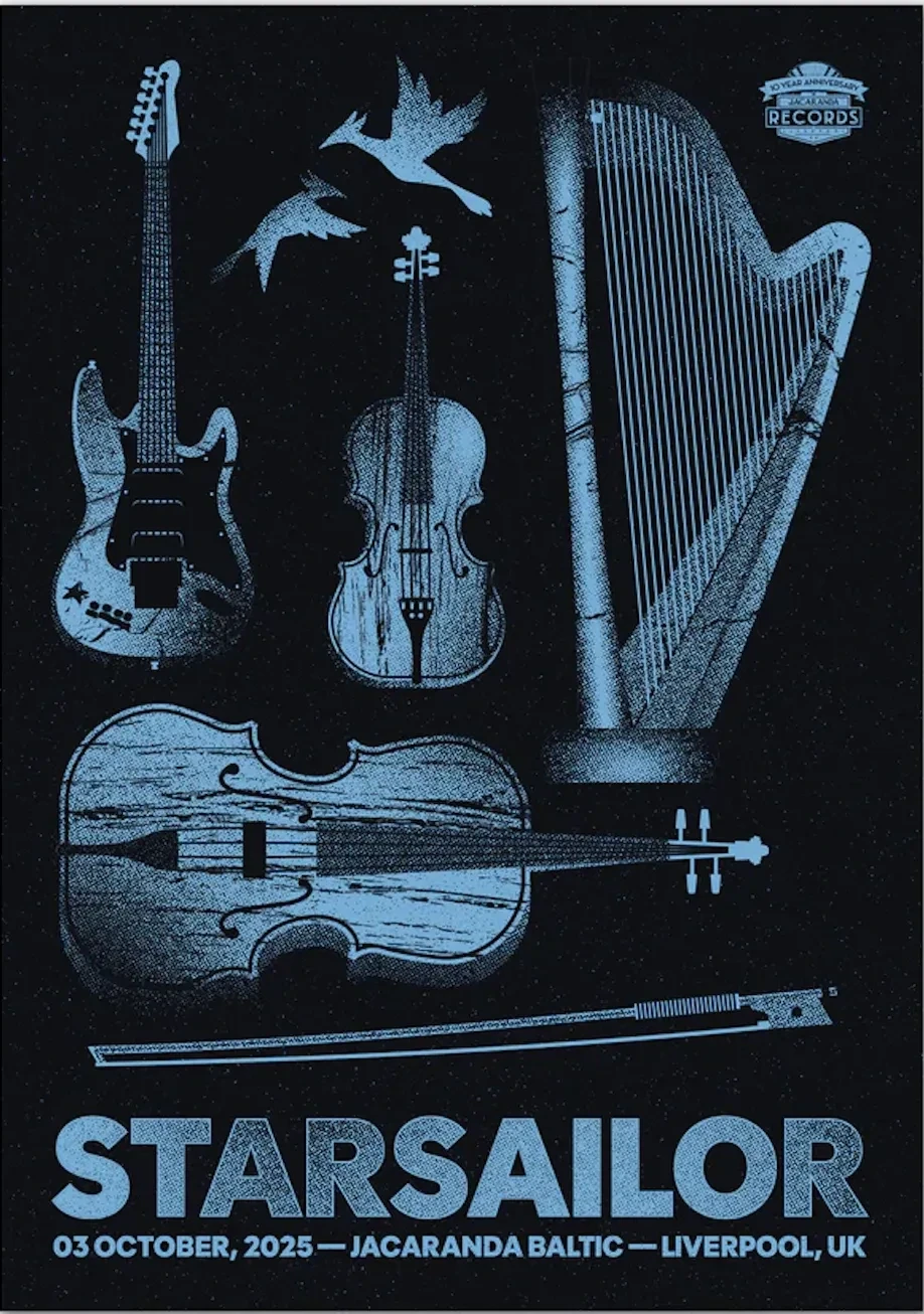 As part of their 25th anniversary celebrations, Starsailor released their first official live album, ‘Starsailor with Strings – Live from Liverpool’. On their record store tour they played the legendary Jacaranda, where fans were treated to a special edition Jacaranda tour poster that featured a Serenade Sticker with access to the album and exclusive content.